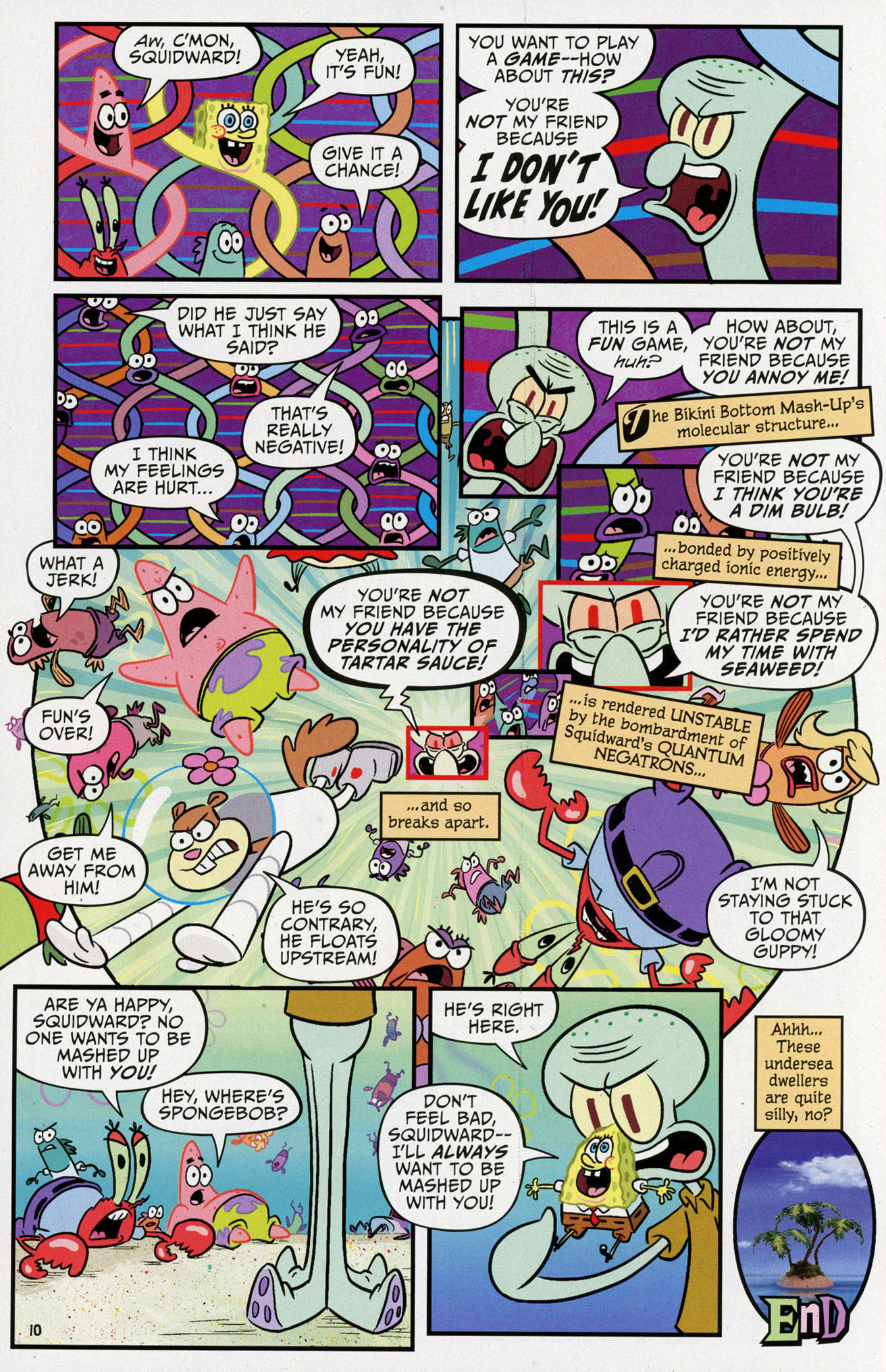 Squidward and other characters also have different Infinite/Immeasurable speed feats, for example, SpongeBob can travel the entire Universe until he destroys it, and we must keep in mind that the universe is infinite and contains an infinite amount of timelines, also, SpongeBob can spin a hamburger so fast that it travels to another dimensional plane because of its spinning speed, being an Immeasurable speed feat. It is comparable to Mermaid Man, who can react by traveling through time. It is comparable to normal Bikini Bottom fish, which can run away from SpongeBob while traveling in time. And even Squidward himself can go all the way around Nowhere, a void with infinite size. SpongeBob's characters have a fairly consistent Infinite to Immeasurable speed, so that can be taken into account.